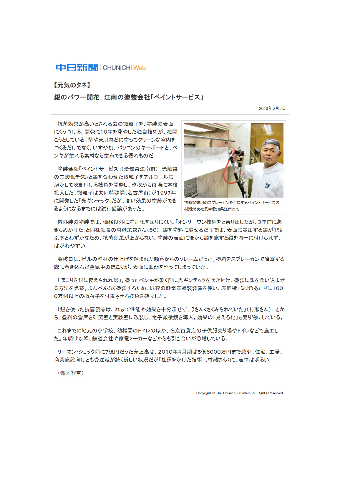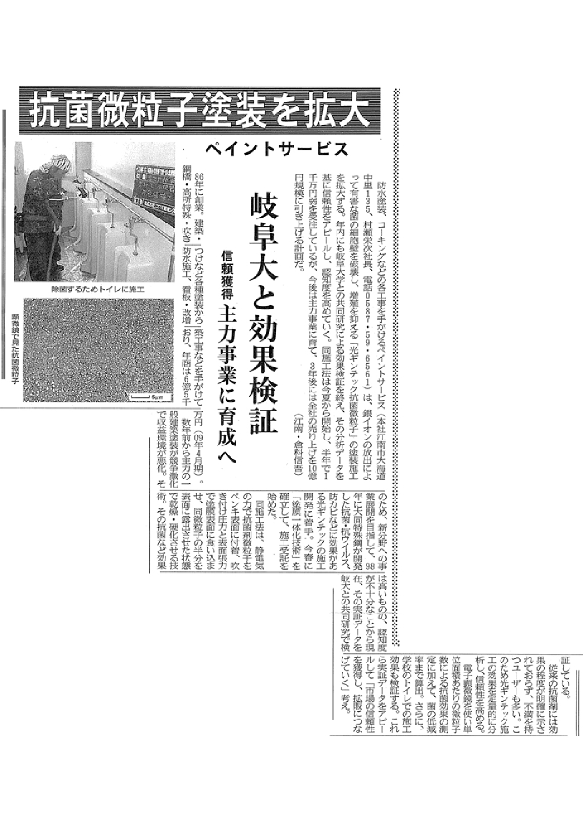 | 平成20年11月 | ギンテック抗菌コーティング施工・加工トータルシステム 「スーパー抗菌コートAg」を発売 |